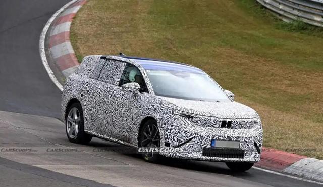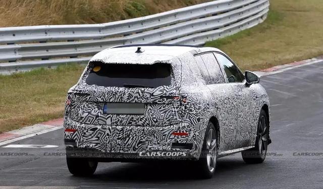 侧面是其“非传统SUV观感”的主要来源。A柱倾角明显偏大,车顶线条更平缓延伸,带来更强的流线型与空间导向;肩线与轮拱区域有一定隆起,尝试在柔和轮廓中补足力量感。车顶尾端可见小型扰流结构,用于拉长视觉比例并兼顾高速稳定性,但在现有轮廓下,会进一步强化“车身更长、更圆润”的整体印象。由于贴花覆盖,门把手、窗线细节与型面折线仍无法准确判断。