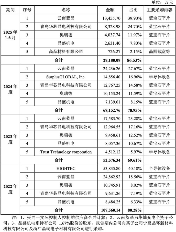 同期,该公司向前五大原材料供应商的采购金额占采购总额比例分别为80.28%、69.61%、78.95%、86.53%。