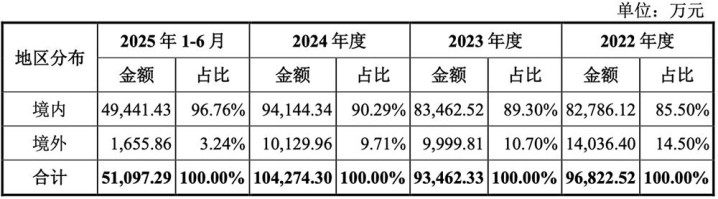 报告期内,其主营业务中境外销售收入占比分别为14.50%、10.70%、9.71%、3.24%。